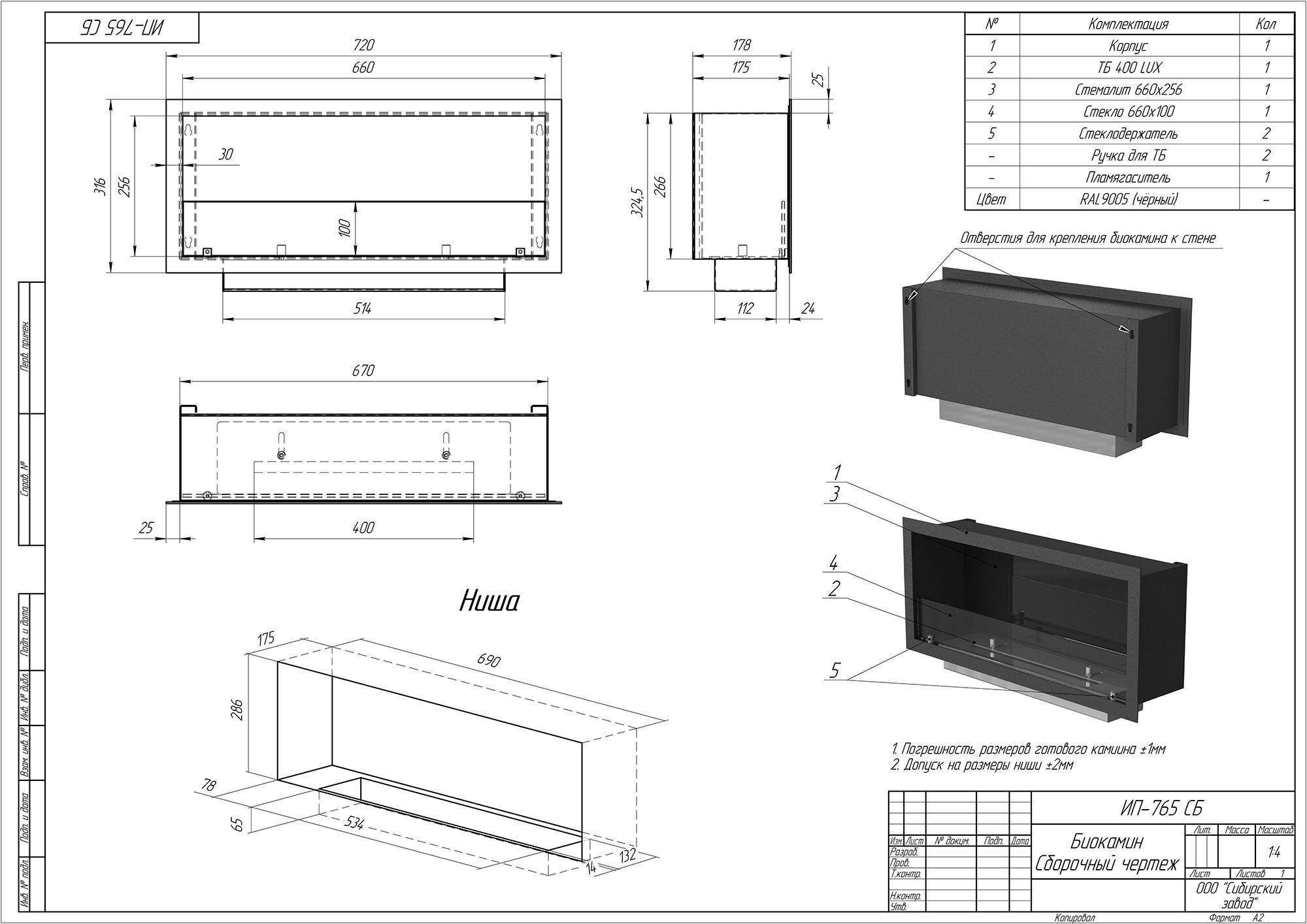 Размер камина