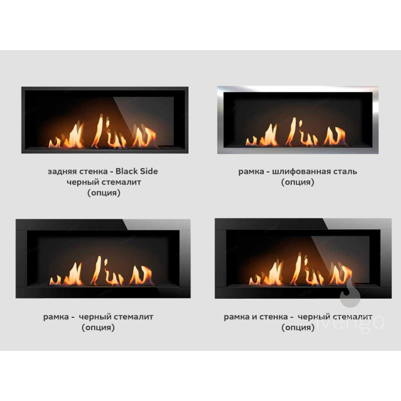 Очаг – это емкость куда заливается жидкое топливо. Емкость внутри заполняется керамическим материалом, который впитывает биотопливо, и в случае опрокидывания камина топливо не разливается. За счет этого конструкция стала полностью пожаробезопасной. Очаг встраивается в корпус из стали, который окрашивается специальной термостойкой краской, или же в заранее подготовленную нишу, изготовленную из негорючих материалов.