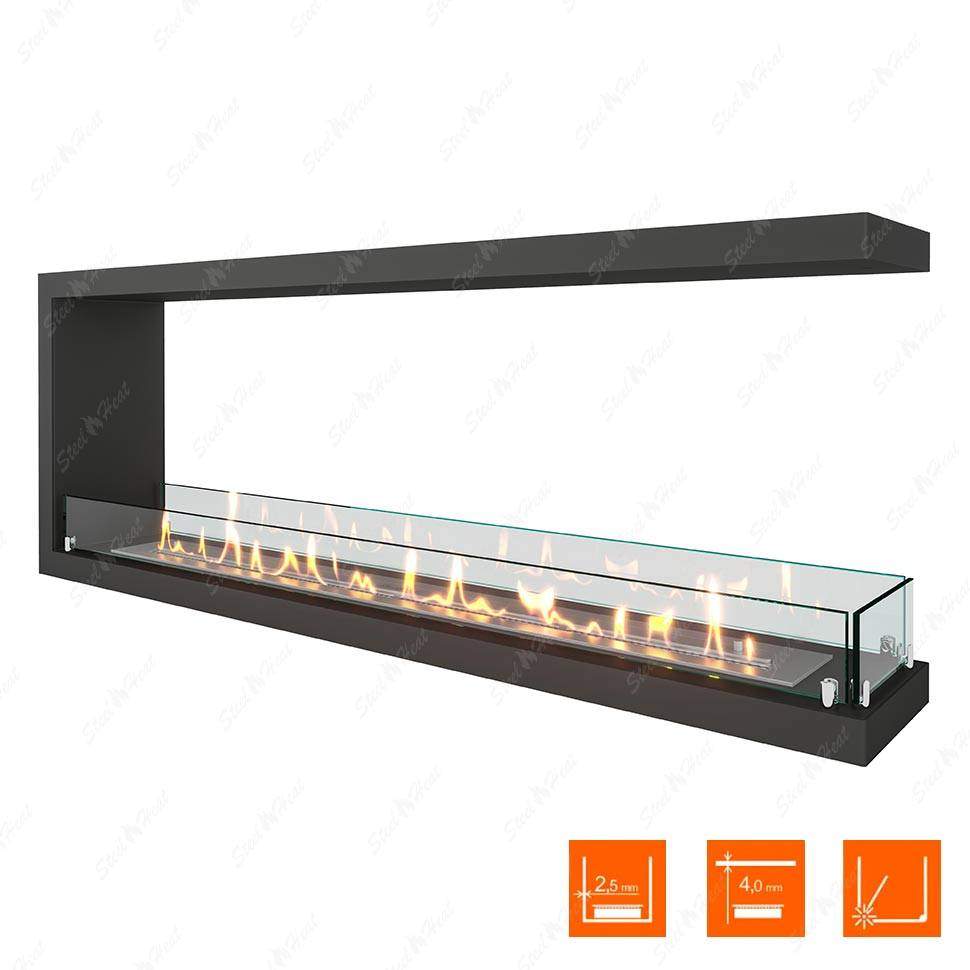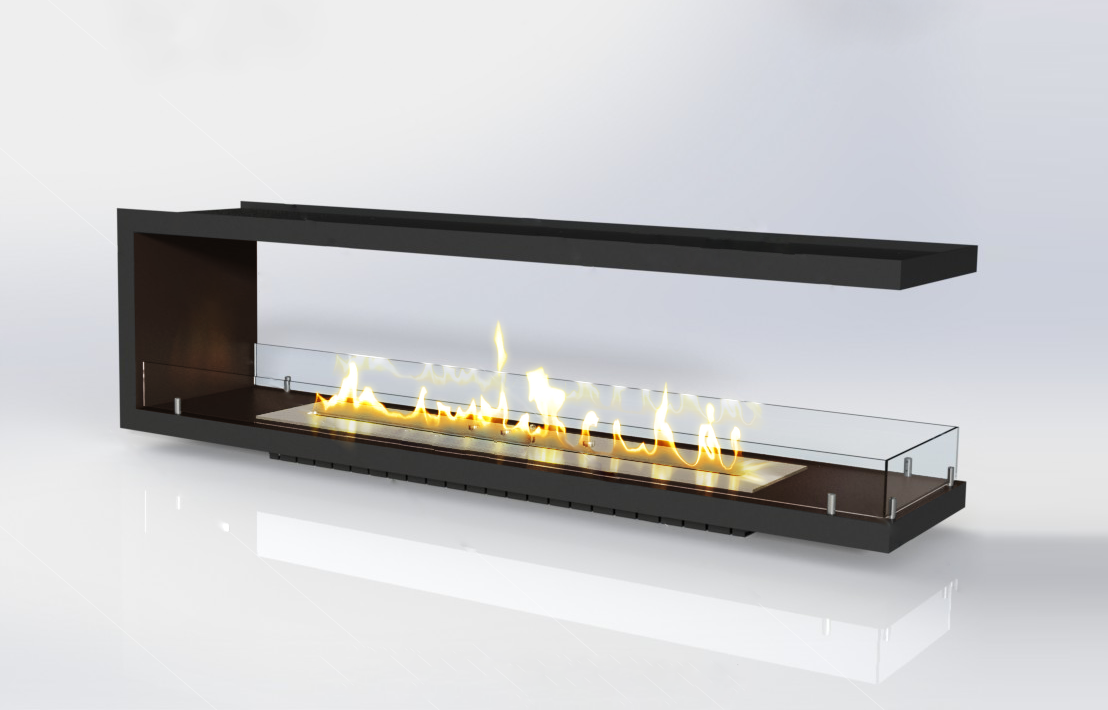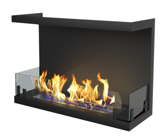 Торцевые биокамины отличаются от остальных вариантов своим форматом, а именно наличием трёх стен: передней, задней и боковой. Корпус сделан из прочного огнеупорного материала: мрамора, металла, стали или стекла. Сама конструкция содержит топливный блок и регулятор пламени, с помощью которого контролируется уровень и интенсивность пламени.Плюсы торцевых биокаминов: