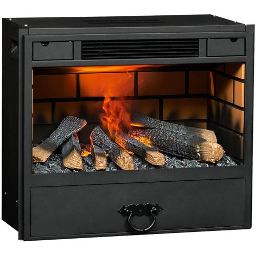 Внутренние стенки очага оформлены вставкой, имитирующей крупную кирпичную кладку. Также внутрь встроен керамический муляж дров разного размера и углей. Окраска муляжа обеспечивает их максимальную реалистичность. Используемая подсветка муляжа позволяет достичь эффекта мерцания дров в процессе работы очага.
