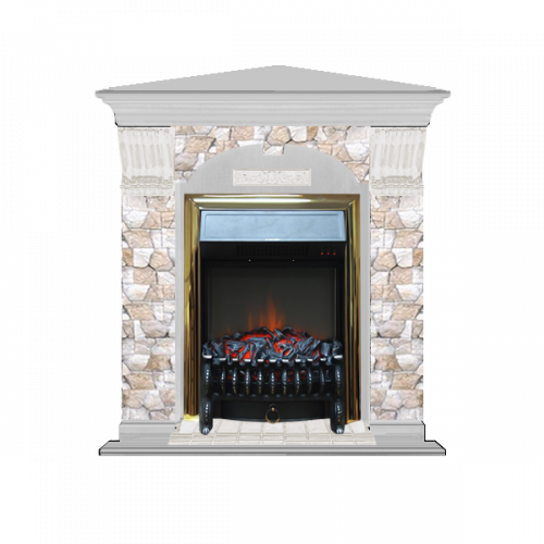 Каминокомплект Glenrich Арочный Арбат угловой (беленый дуб)+Fobos Brass
