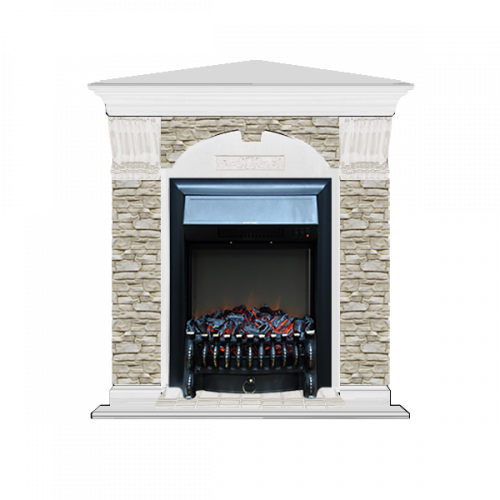 Каминокомплект Glenrich Арочный Грот однотонный угловой (белый)+Fobos Black