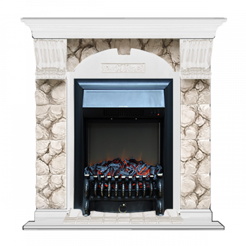 Каминокомплект Glenrich Арочный Карелия (белый)+Fobos Black