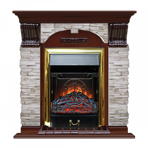 Каминокомплект Glenrich Арочный Мисхор (красное дерево)+Majestic Brass
