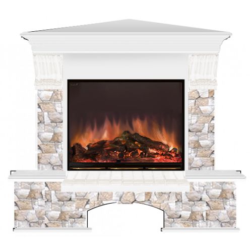 Каминокомплект Glenrich Бостон Арбат угловой (белый)+Arte 23