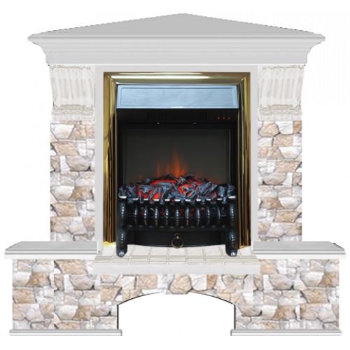 Каминокомплект Glenrich Бостон К Арбат угловой (беленый дуб)+Fobos Brass