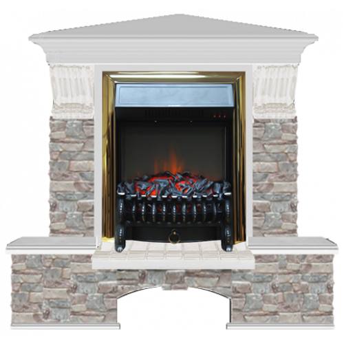 Каминокомплект Glenrich Бостон К Грот цветной угловой (беленый дуб)+Fobos Brass