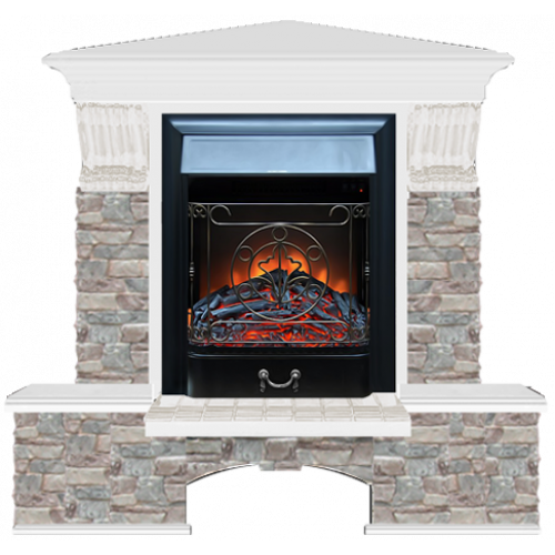 Каминокомплект Glenrich Бостон К Грот цветной угловой (белый)+Majestic Black