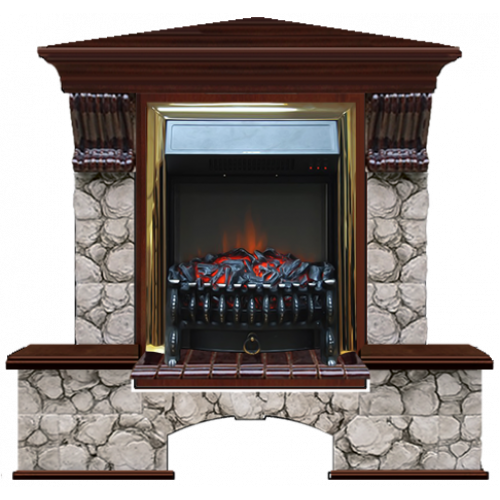Каминокомплект Glenrich Бостон К Карелия угловой (красное дерево)+Fobos Brass
