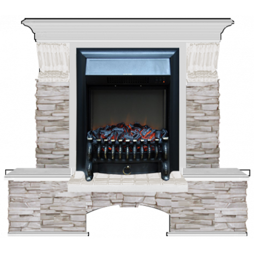 Каминокомплект Glenrich Бостон К Мисхор (беленый дуб)+Fobos Black