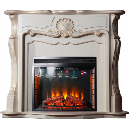 Каминокомплект InterFlame Грация (бежевый с золотой патиной)+Panoramic 28