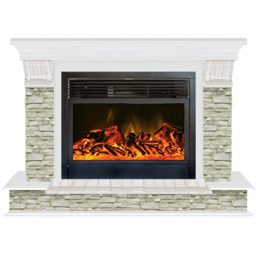 Каминокомплект Glenrich Панорама Грот однотонный 28 (белый)+Newflame