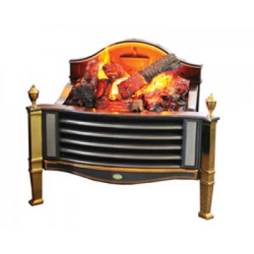 Очаг предназначен для размещения в уже существующем камине. Модель топки разработана с учетом всех последних разработок и достижений в отрасли производства электрических каминов. Уникальный эффект пламени Opti-Myst позволяет не только создать в городской квартире «живое» пламя, которое невозможно отличить от настоящего, но и увлажняет воздух в помещении и делает микроклимат в помещении более благоприятным.Сам очаг отличается изяществом дизайна - точеные позолоченные ножки поддерживают колосник насыщенного черного цвета, в котором расположены поленья со встроенными светодиодами, что делает их неотличимыми от натурального тлеющего в костре дерева. На задней стенке очага размещены фигурные флористические элементы, которые гармонично сочетаются с общим стилевым решением камина.