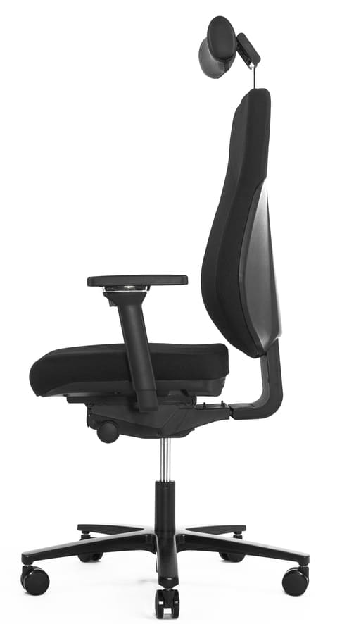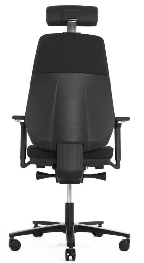 Высокая спинка оригинального дизайна с зауженной верхней частью для свободного движения в плечевой зоне и свободного раскрытия грудной клетки. Удобная настройка по высоте без кнопок и рычагов, в диапазоне 60 мм, 5 точек фиксации. Выделена поясничная зона и зоны боковой поддержки. Верхняя часть спинки состоит из плотного наполнителя, удерживающего правильное положение в грудном отделе позвоночника. Оригинальная ортопедическая конструкция управляет осанкой пользователя.