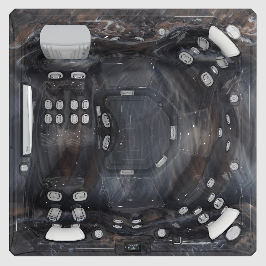 Оптимизированный поток воды Wellis. Наш усовершенствованный электрический водоотвод обеспечивает на 75% более высокое давление гидромассажа. Потребление энергии на 45% ниже по сравнению с другими системами управления предыдущих моделе.