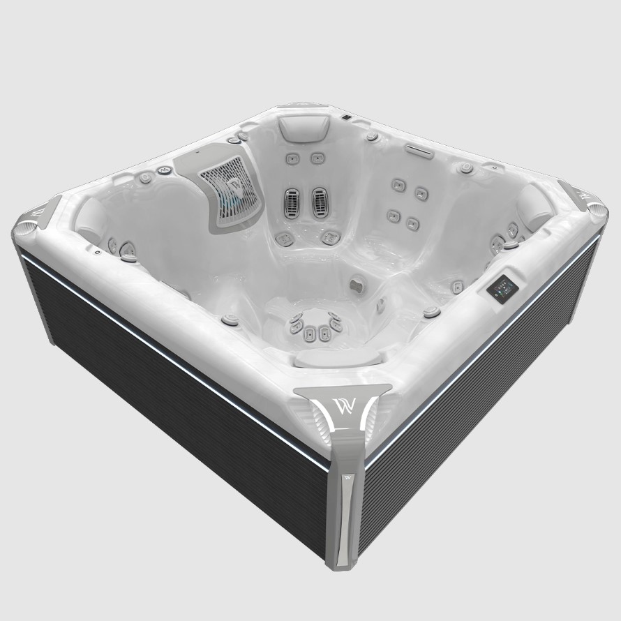 Оптимизированный поток воды Wellis. Наш усовершенствованный электрический водоотвод обеспечивает на 75% более высокое давление гидромассажа. Потребление энергии на 45% ниже по сравнению с другими системами управления предыдущих моделе.